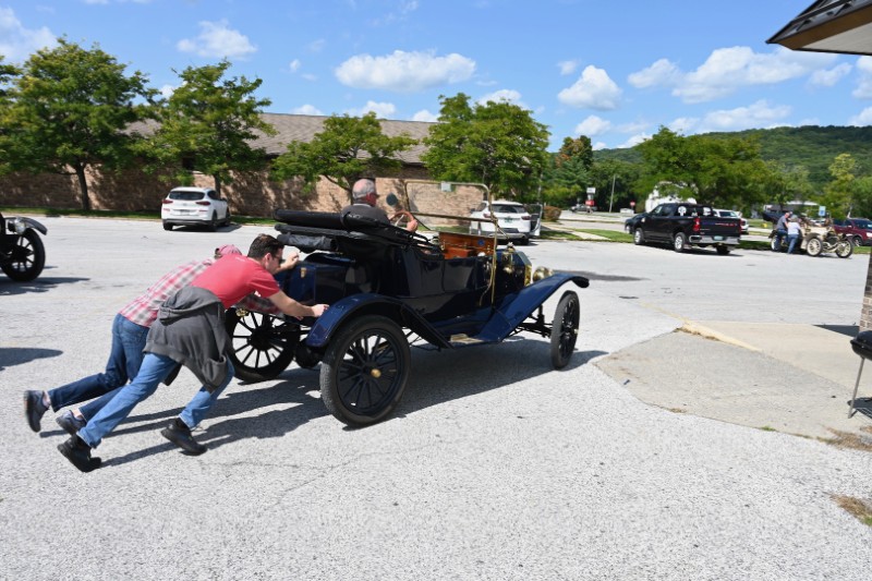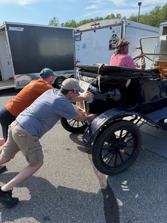Joe and Jadon Push Carl Goodman’s 1911 Model T